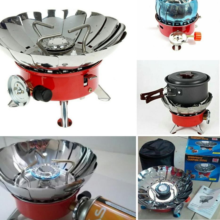 Kompor yang dipilih tentunya yang bersifat portable karena akan mudah dibawa dan praktis digunakan. Kompor untuk kegiatan outdoor ini tersedia dengan beberapa fitur. Fitur tersebut antara lain dapat dilipat hingga bentuk kecil dan penahan angin dari stainless steel. Yang pertama ada produk kompor.